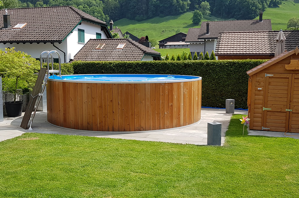 Die Rüegg Udo AG bietet Ihnen Top Aufstell-Schwimmbecken im umfangreichen Rüegg-Set an. Die beiden Modelle FUN METAL und FUN WOOD unterscheiden sich durch die Verkleidung. Das Modell FUN WOOD ist ein doppelwandiger Pool mit einer hochwertigen Stahlwand und einer naturbelassenen Holzverkleidung, die individuell imprägniert oder lasiert werden kann.
