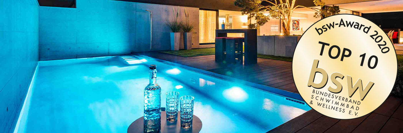 Voller Stolz durfte die Rüegg Udo AG erneut einen renommierten Pool-Oscar vom Bundesverband Schwimmbad & Wellness e.V. (bsw) entgegennehmen. Der private Aussenpool wurde mit dem bsw Silber-Award in der Kategorie "Standard" prämiert.