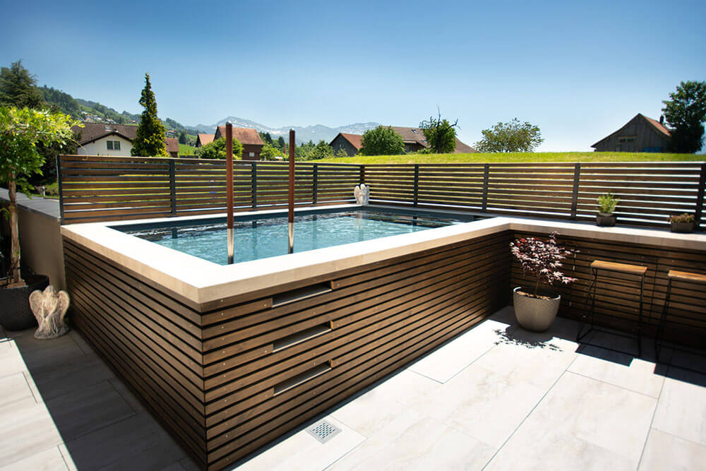 Mit uns gilt nicht hin und weg, sondern hin und bleiben. Entdecken Sie die individuellen Möglichkeiten des neuen Aufstell-Schwimmbeckens, um Ihre Terrasse in einen «Terrassee» zu verwandeln.