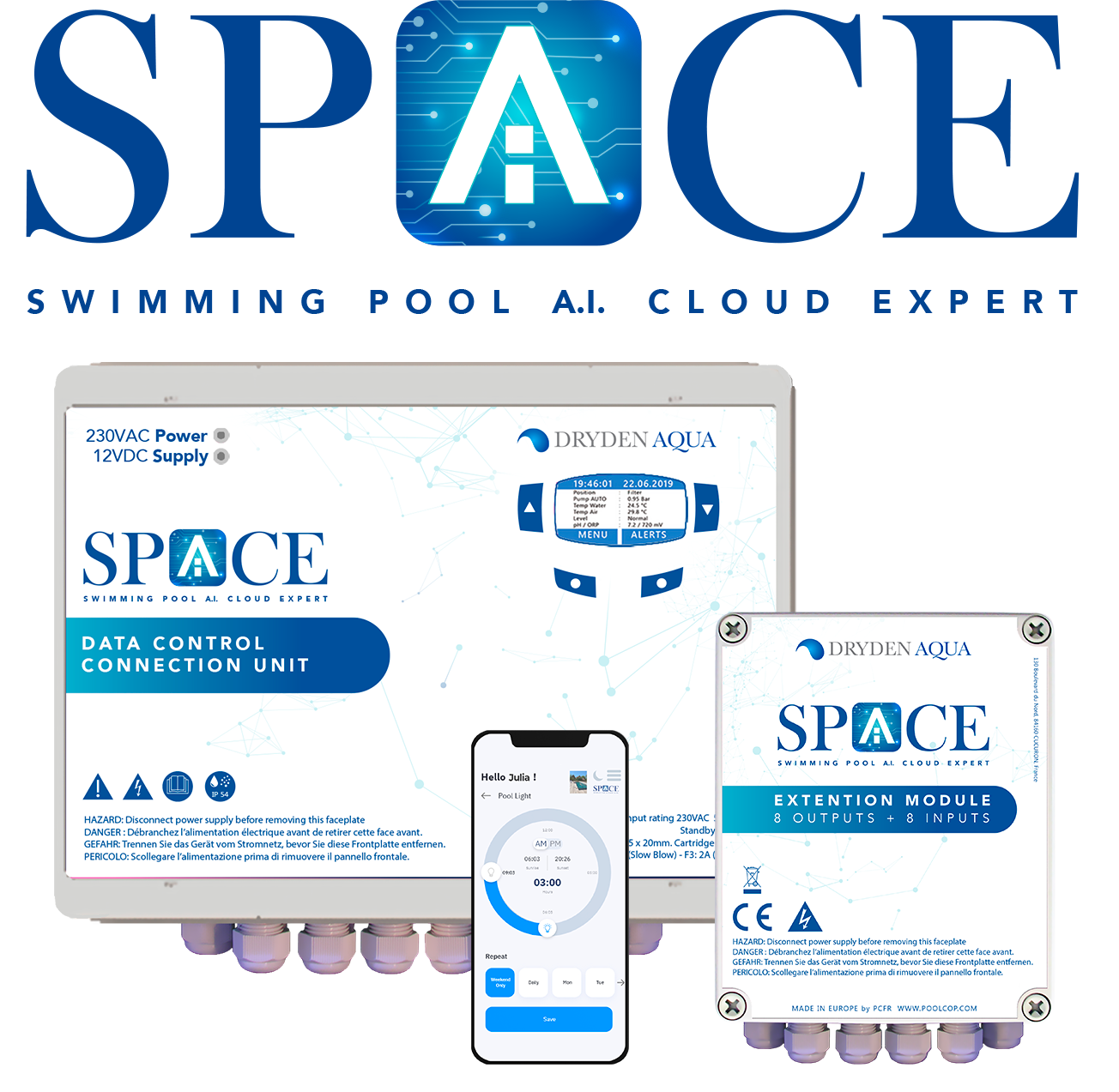 Optimieren Sie Ihr Schwimmbaderlebnis mit der Poolsteuerung SPACE. Für automatische Dosierung von Wasserpflegeprodukten. Nachhaltig und bequem.